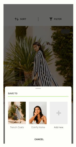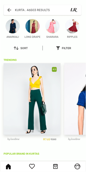We realised that users had a natural orientation to like and shortlist product around intent for fashion before making a purchase. Through our observations, we felt this was the most quickly and immediately understood interaction around fashion, it identified with user behaviours across geographies and age groups.